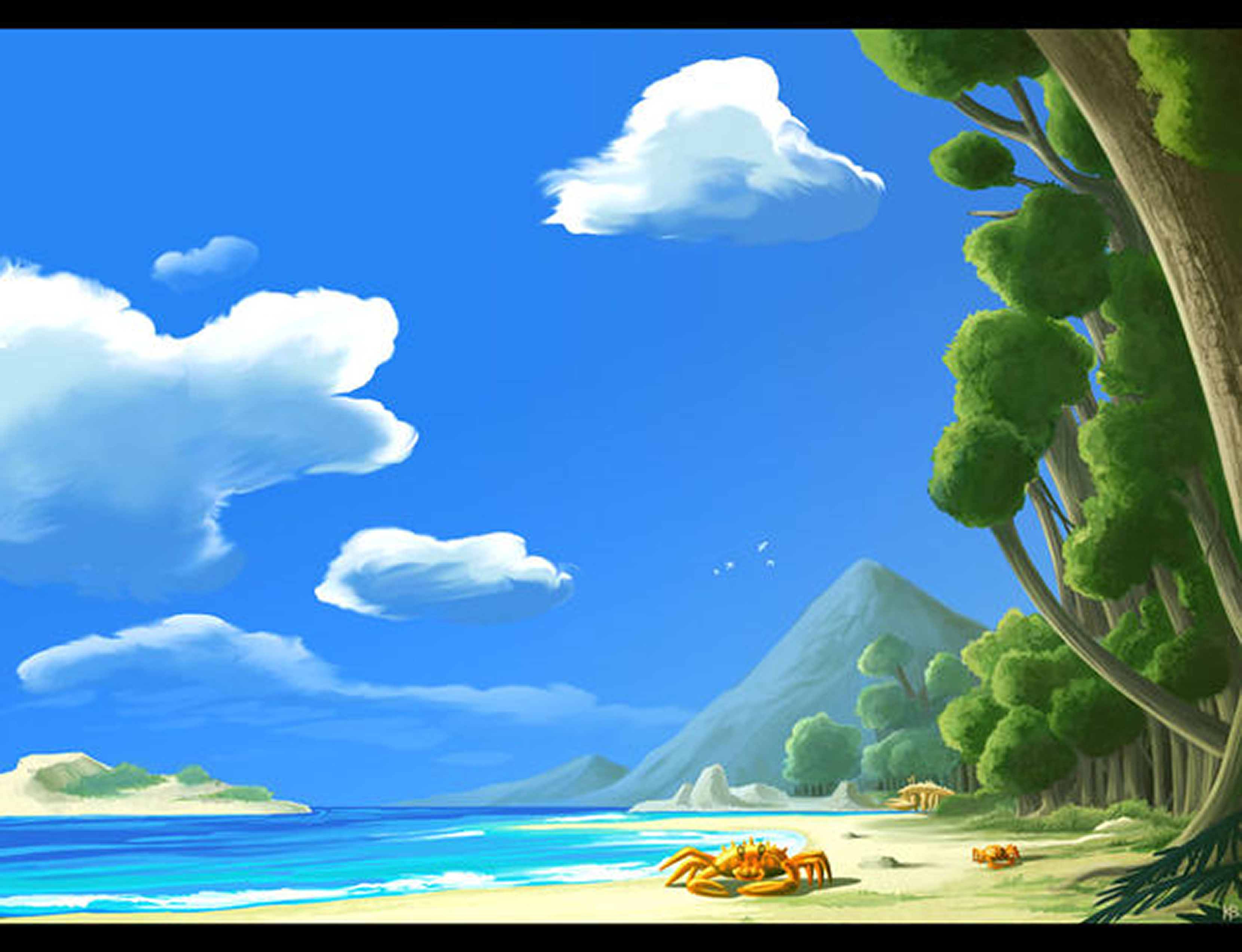 Between mountains of fire in the south, and ice in the north, this spit of land, many times longer than it is wide, supports a vast and flourishing deciduous forest. At its mid-point sits the Rosic neko village, nestling at the foot of the Moyuk hills. Small rivers and gentle streams run past their village down to a shallow, wide bay with small islands where the nekos love to fish and perform. It is rumored that a Sea Krait Naga lives here, a close friend of the village's nekos. North of that bay, the sedimentary sandstones contains many fossils, some of them giant, and some eternally inside the bellies of the larger ones when they died. Those beaches also seems to have served as a cemetery of sort for gigantic tortoise-like creatures in ancient times, for many titanic and empty shells lie there, often reclaimed by the lush vegetation.